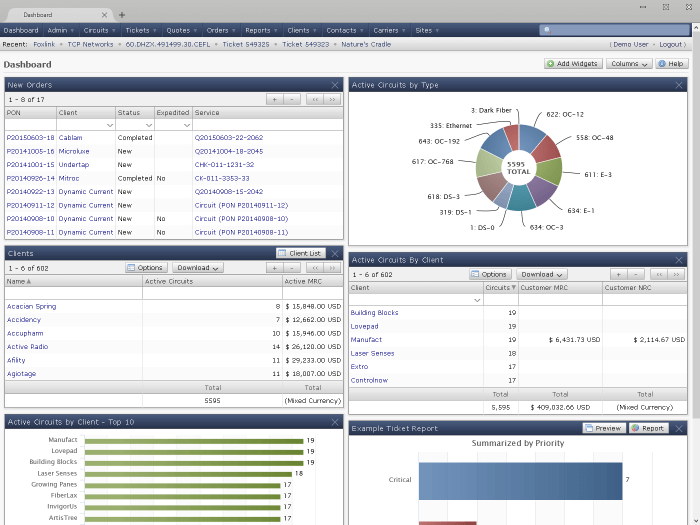 View all your customer circuits, orders, tickets, quotes, and more in one easy-to-use interface.