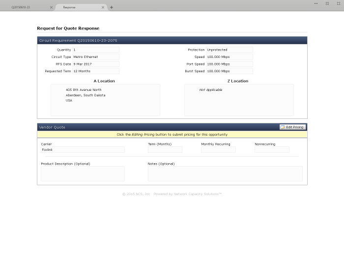 After E-mailing your requirements to vendors from the application, they can respond directly via a one-time-use response form.