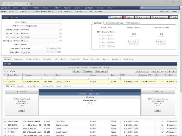 Compile all your circuit related information in one common, easy to use web-based platform. Track the details of multi-vendor circuits.
