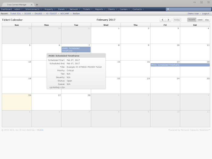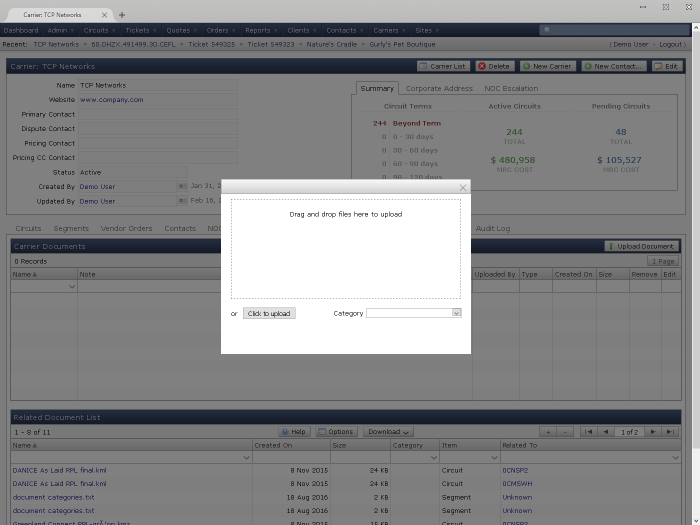 Use the trouble ticket feature to track customer issues related to circuits and document outages.