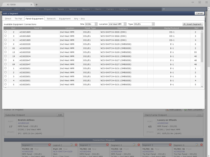 Build connections between panels and equipment to document the entire path of a cross connect through the data center, or even between data centers.