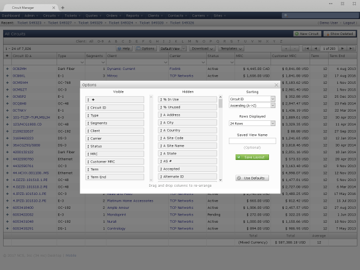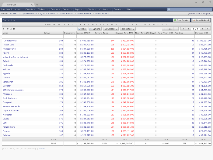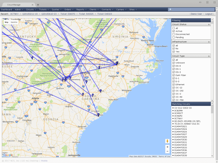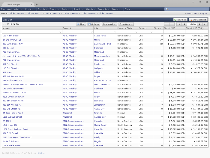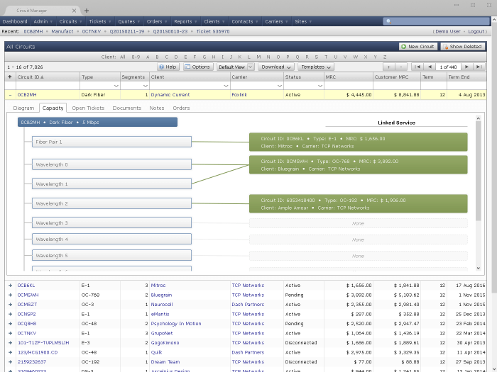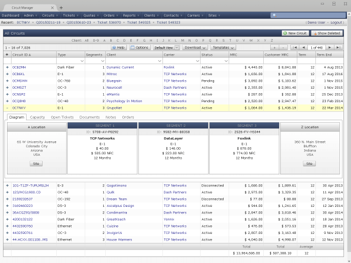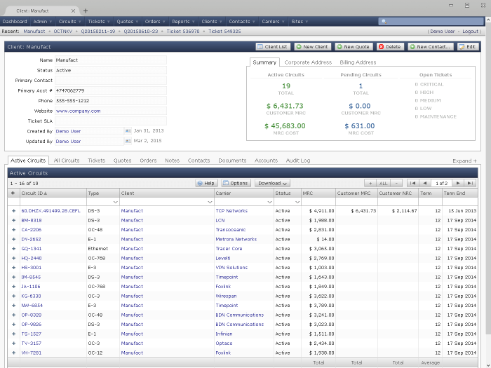 View all your customer circuits, orders, tickets, quotes, and more in one easy-to-use interface.