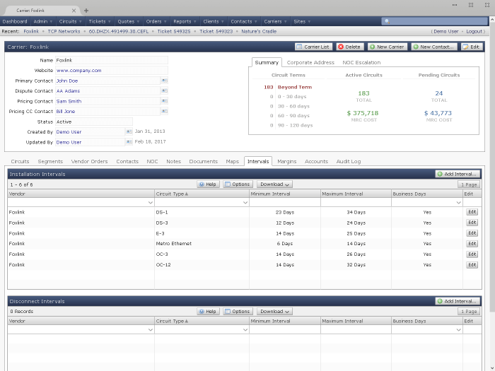 Compile all your circuit related information in one common, easy to use web-based platform. Track the details of multi-vendor circuits.