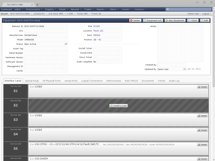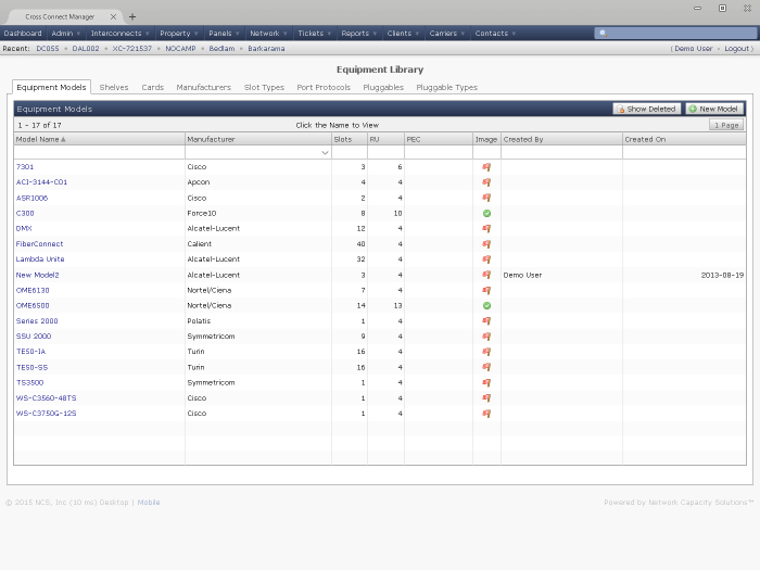 Build a library of different types of equipment and interface cards with port level detail.
