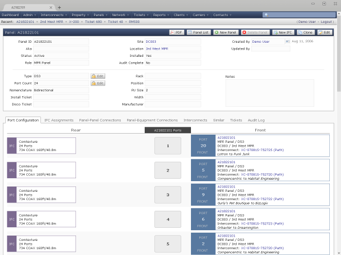Panels can be any type and role, with any port labeling scheme. All the parameters are controlled by the user.