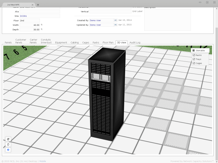 The application allows you to organize your data center space by campus, site/building, and location/room.