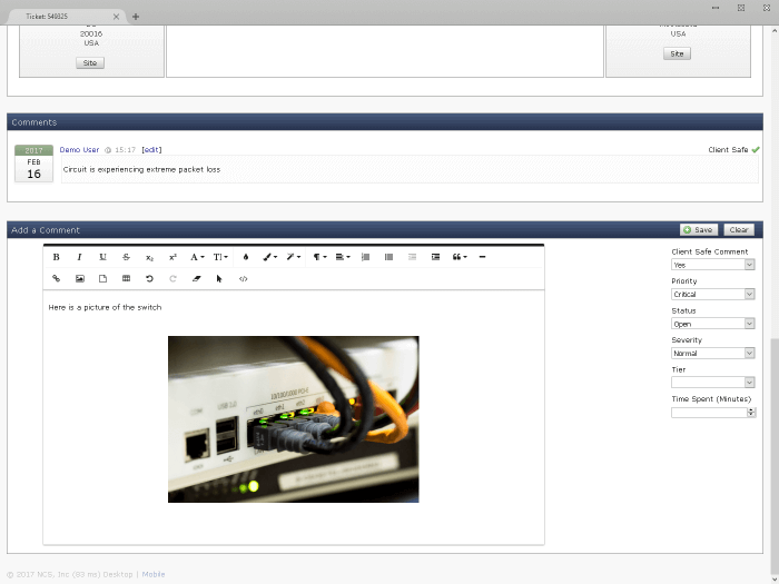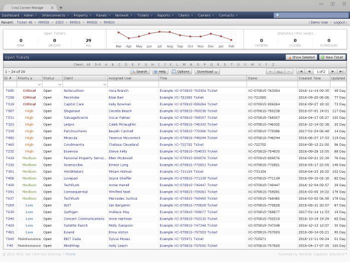 Use the trouble ticket feature to track customer issues related to circuits and document outages.